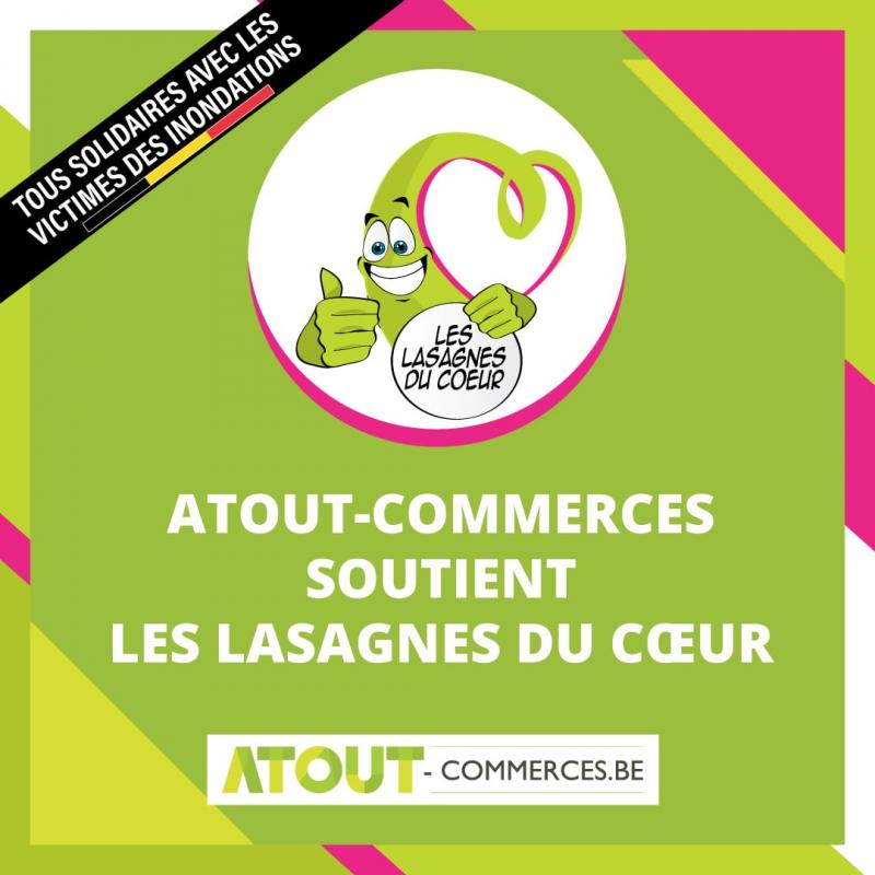 Les lasagnes du cœur ont une bonne nouvelle à vous annoncer : Atout-Commerces nous offre un sponsoring à utiliser pour promouvoir nos actions sur leur page Facebook. Mais ce n’est pas tout Ils offrent également 1 repas supplémentaire réservé aux sinistrés pour toute commande de produits des lasagnes du cœur. C’est simple, contactez notre service client au numéro gratuit 0800 854 54 et communiquez le code : « ATOUT COMMERCES », un repas supplémentaire sera offert aux victimes des inondations. Vous êtes un particulier ou une société et vous souhaitez aider les sinistrés mais vous n'avez pas la possibilité de vous déplacer sur le terrain ? Commandez des plats chez Les Lasagnes Du Cœur, on s'occupe de les livrer aux sinistrés. la page Facebook Atout-Commerces
