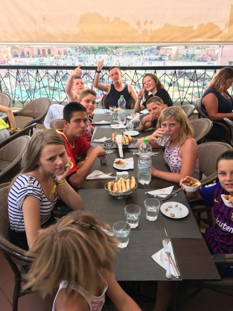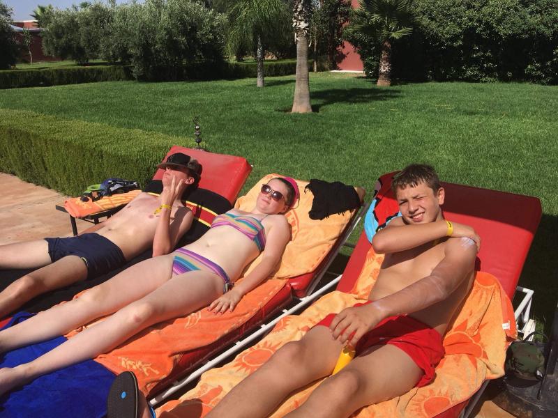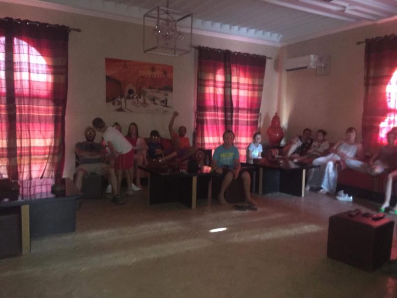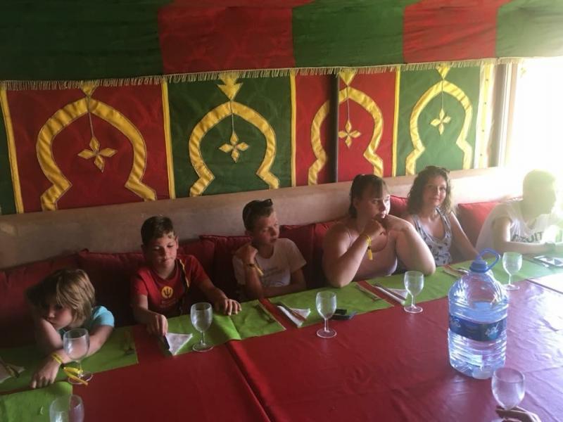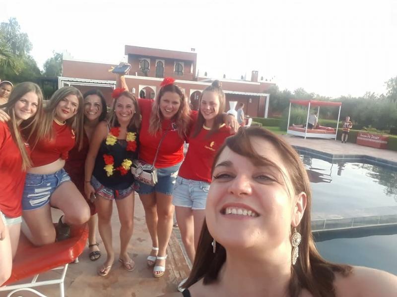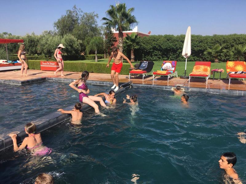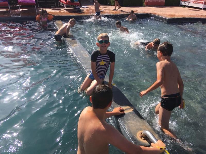 Le lendemain, nous découvrons un domaine magnifique avec une énorme piscine! Nous sommes tellement excités que nous passons toute la journée à jouer dans la piscine! Le soir, c’est le grand soir, nous allons supporter les Diables Rouges contre la France! Après un bon souper tajine, nous mettons notre plus belle vareuse et nous allons regarder le match. Malheureusement, la Belgique a perdu, quelle déception !