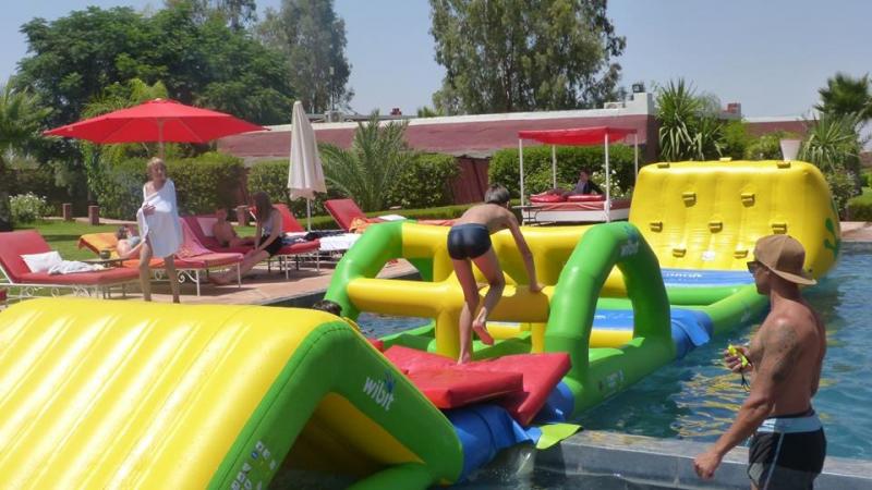 Aujourd’hui, on nous réveille très tôt pour faire de la montgolfière ! Au petit matin, nous voyons devant nous la montgolfière se gonfler. Les animateurs nous expliquent que l’air chaud va la faire décoller. Nous montons par petits groupes dans la nacelle et hop on s’envole! Nos camarades restés au sol ont l’air de playmobil, hihihiii, quelle aventure ! De retour au Domaine, après un bon repas, on découvre que la piscine a été transformée en parcours gonflable! On fait des courses, on glisse et on tombe tous dans l’eau. C’est trop fun, on y joue pendant des heures, on ne s’en lasse pasCe matin, nous n’allons pas très loin, nous allons dans la palmeraie faire du dromadaire! C’est au tour d’Alex des Lasagnes du Coeur de venir avec nous. Les personnes qui s’occupent des dromadaires voilent nos éducateurs et leur mettent des djellabas! Que de fous rires! Mais on n’a pas le temps de s’en remettre, qu’on nous voile nous aussi! Une fois tous voilés, la balade commence! Nous sommes emmenés par les dromadaires comme en plein désert! On chante une chanson de Magic System et on prend le thé chez l’habitant. Quelle bonne humeur !